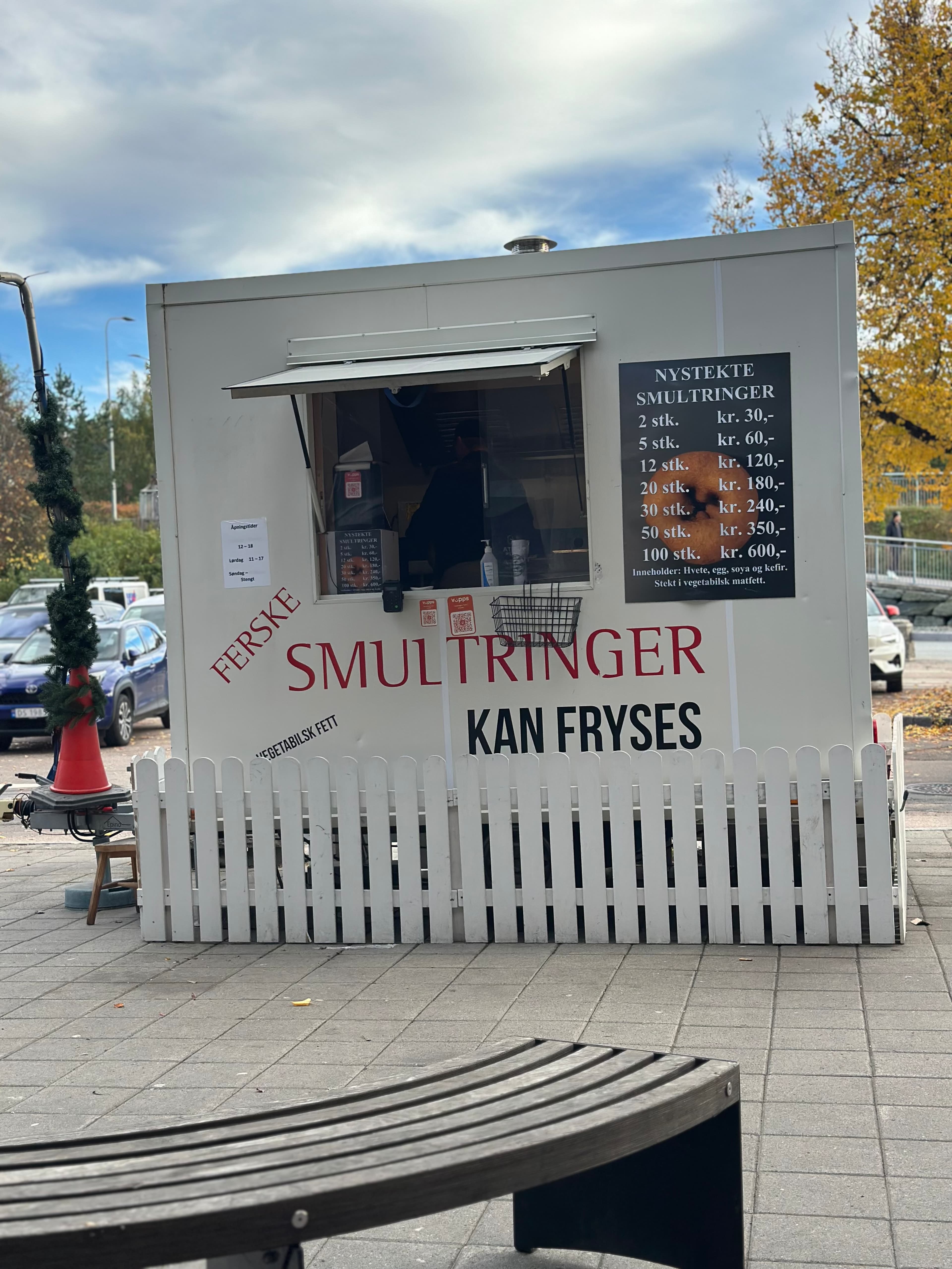 Smultringbua står utenfor senteret og selger ferske smultringer.